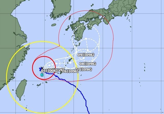 週明け7日(月)には九州の南の海上へと到達した後に北上を始め、9日(水)には強い勢力で九州のすぐ東の海上を中心とする予報円に達する予想とのことです。